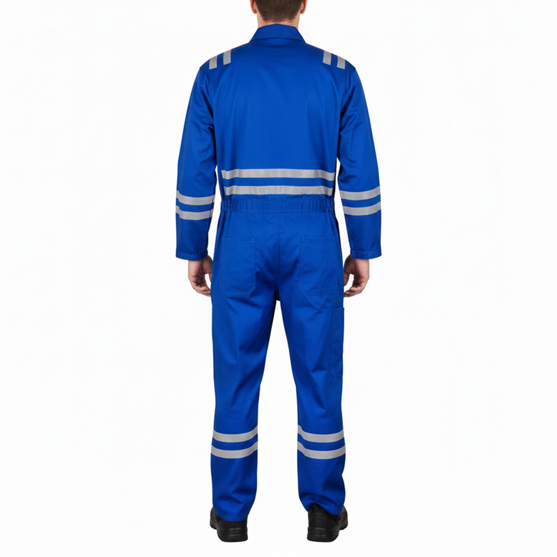 To improve visibility and on-site safety, the coverall includes 1-inch reflective tape placed strategically for clear visibility during night work or low-light conditions. The tape doesn’t restrict movement and helps workers stay noticeable around heavy equipment and active work zones.