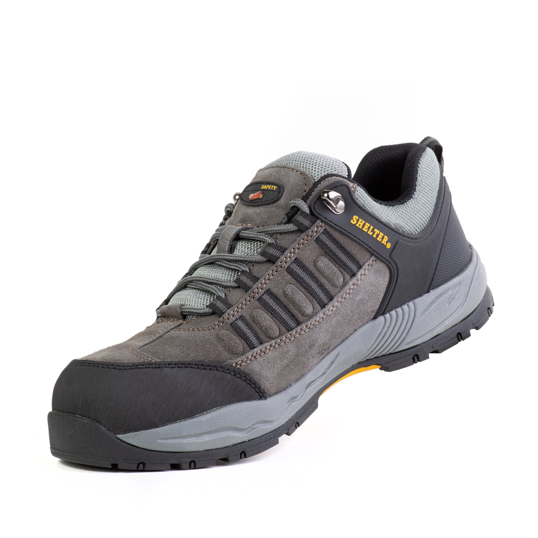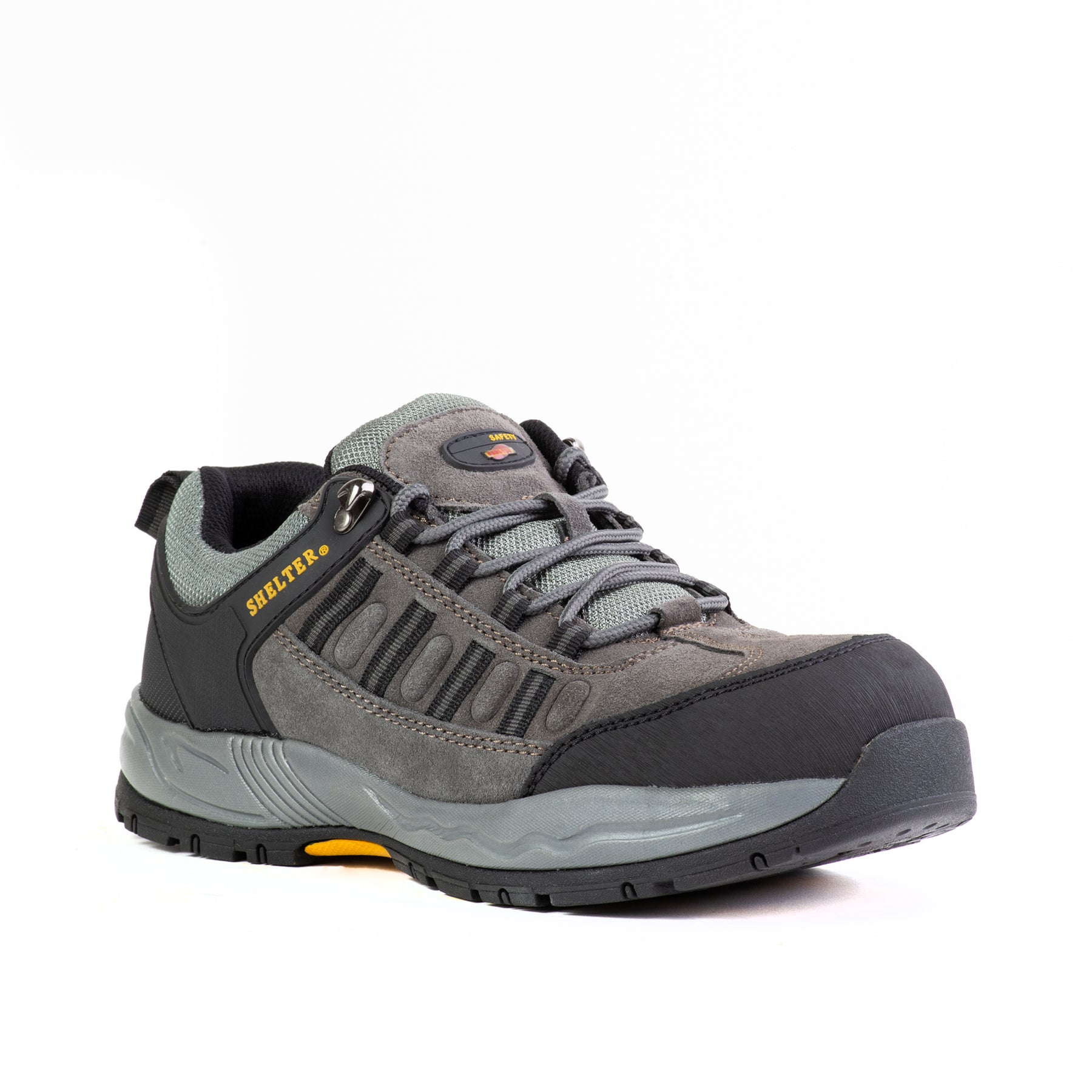 Elevate your work performance with the Shelter Lightweight Safety Shoes, crafted to offer outstanding protection, comfort, and durability. These black safety shoes are perfect for tough work environments such as construction sites, warehouses, and factories. Equipped with a reinforced steel toe cap, these shoes safeguard your feet from impacts and compression while the slip-resistant outsole ensures stability on slippery surfaces. The breathable mesh upper keeps your feet cool and dry, and the shock-absorbing midsoles reduce foot and joint strain, making them ideal for long hours on your feet. Constructed with synthetic leather and robust stitching, these shoes are built to last and withstand the rigors of heavy-duty work. Features