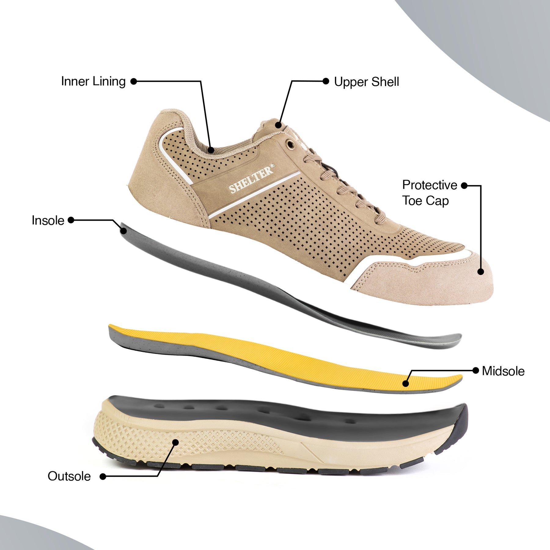 Experience unmatched safety and durability with the Shelter SH70 Safety Shoes. Designed with a robust steel toe cap and built to meet S1 safety standards, these shoes offer exceptional protection in industrial and construction environments. The combination of a PU upper, mesh lining, and a sturdy EVA/rubber sole ensures comfort, breathability, and excellent grip for long working hours. Features